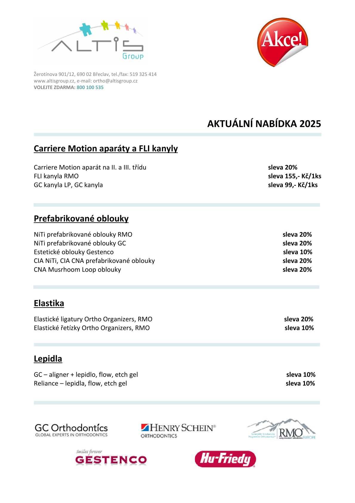 V oboru ortodoncie působíme již od roku 2001. Zastupujeme společnosti Ortho Organizers, Jeil Medical Corporation, Hu-Friedy, Gestenco International AB, RMO a Reliance Orthodontics na českém a slovenském trhu. Nabízíme širokou škálu ortodontického materiálu a výrobků z oblasti estetické stomatologie, určenou převážně pro ortodontické ordinace. V roce 2005 jsme jako první firma úspěšně pronikli na trh prodejem ortodontických miniimplantátů. Kromě prodeje a distribuce ortodontického materiálu se naše společnost zabývá také zajišťováním dalšího vzdělávání zubních lékařů a ortodontických asistentek.